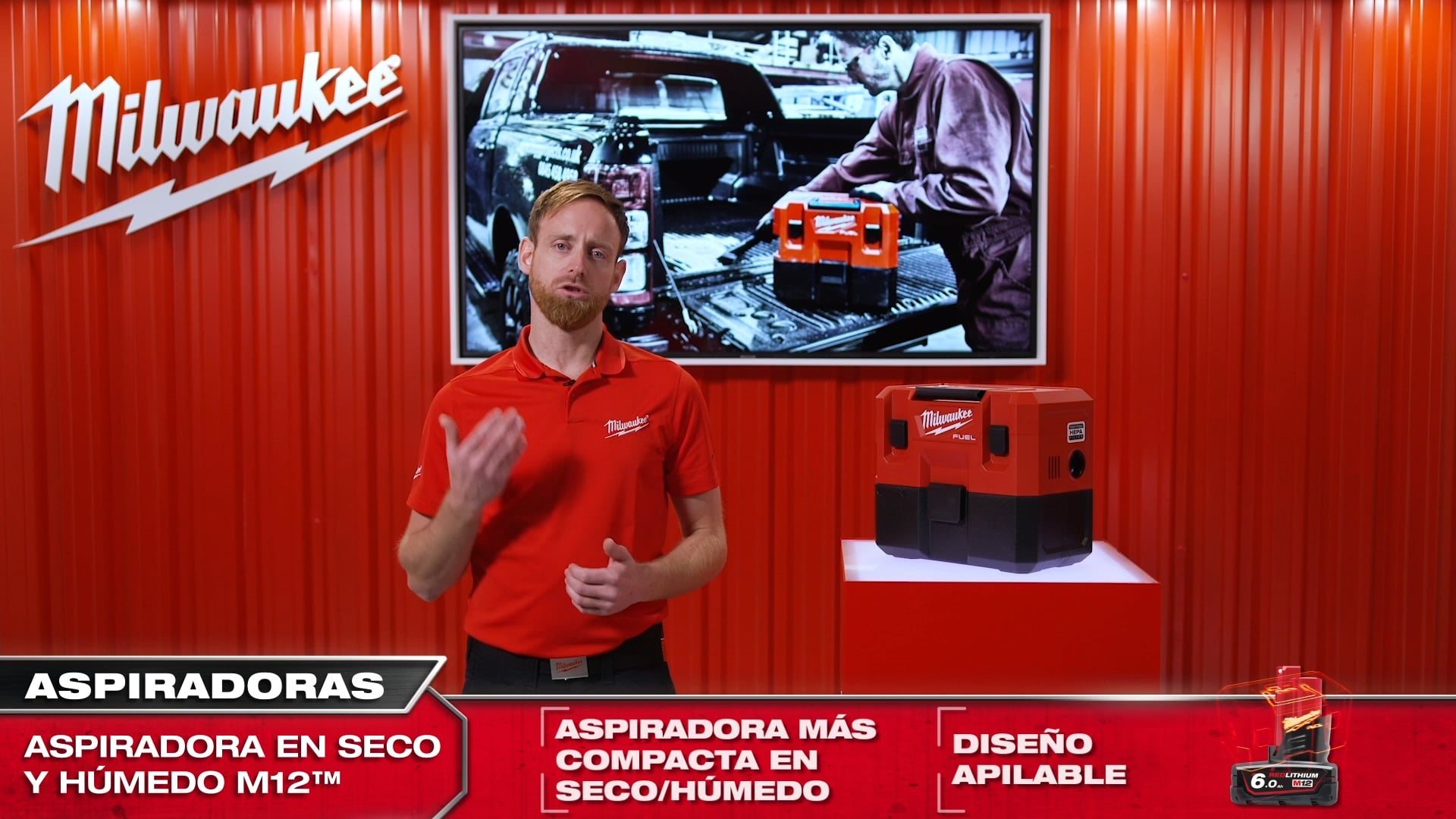 • El potente motor M12 FUEL™ con un flujo de aire máximo de 1.275l/min y 105mbar proporciona un rendimiento de 18V para aplicaciones de limpieza en seco y en húmedo