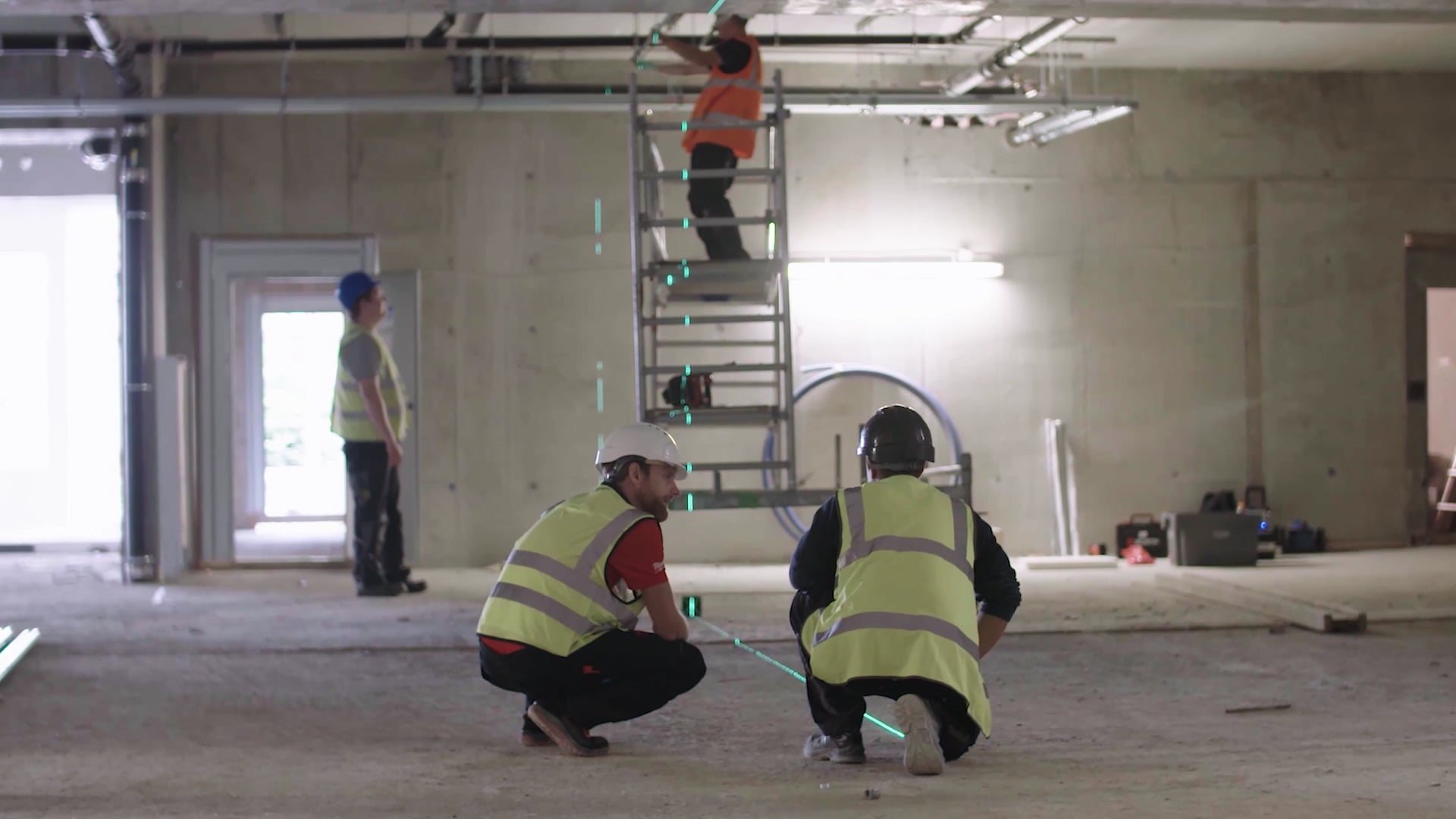 • Nivel láser M12™ de 2 líneas con plomada ofrece una funcionalidad todo en uno con nivelación horizontal, alineación vertical y transferencia de puntos de plomada del suelo al techo