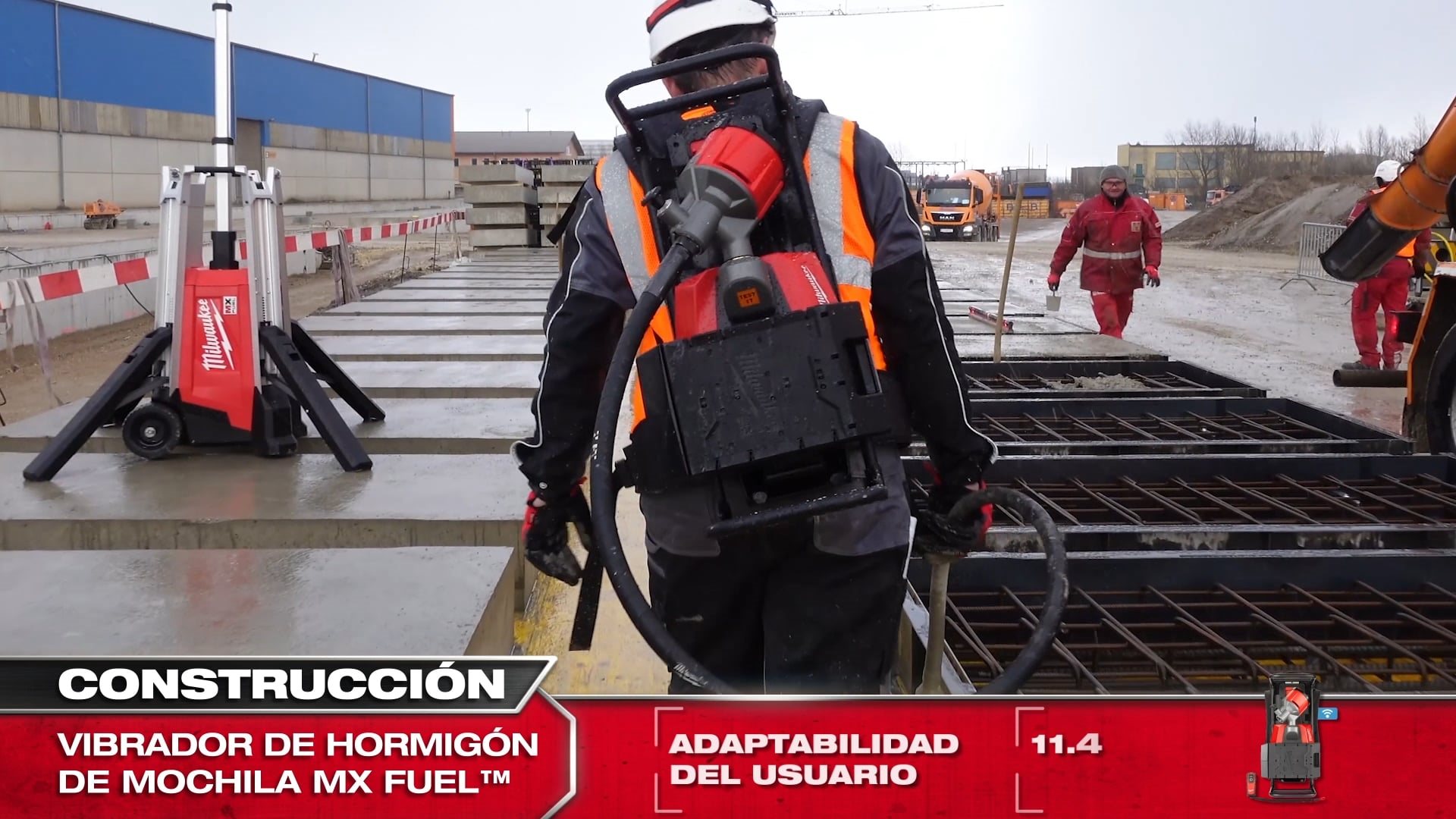 • El vibrador de hormigón de mochila MX FUEL™ es la solución ideal para trabajar en grandes superficies, ya que ofrece un rendimiento similar al cable sin sus inconvenientes, como disponer de una toma de corriente en el lugar de trabajo